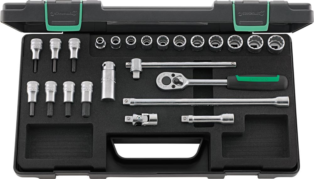 Stahlwille Steckschlüssel-Satz, Vierkantantrieb 3/8 Zoll, Inhalt 24 teilig, Schlüsselweite 8-19 mm, Länge 420 mm