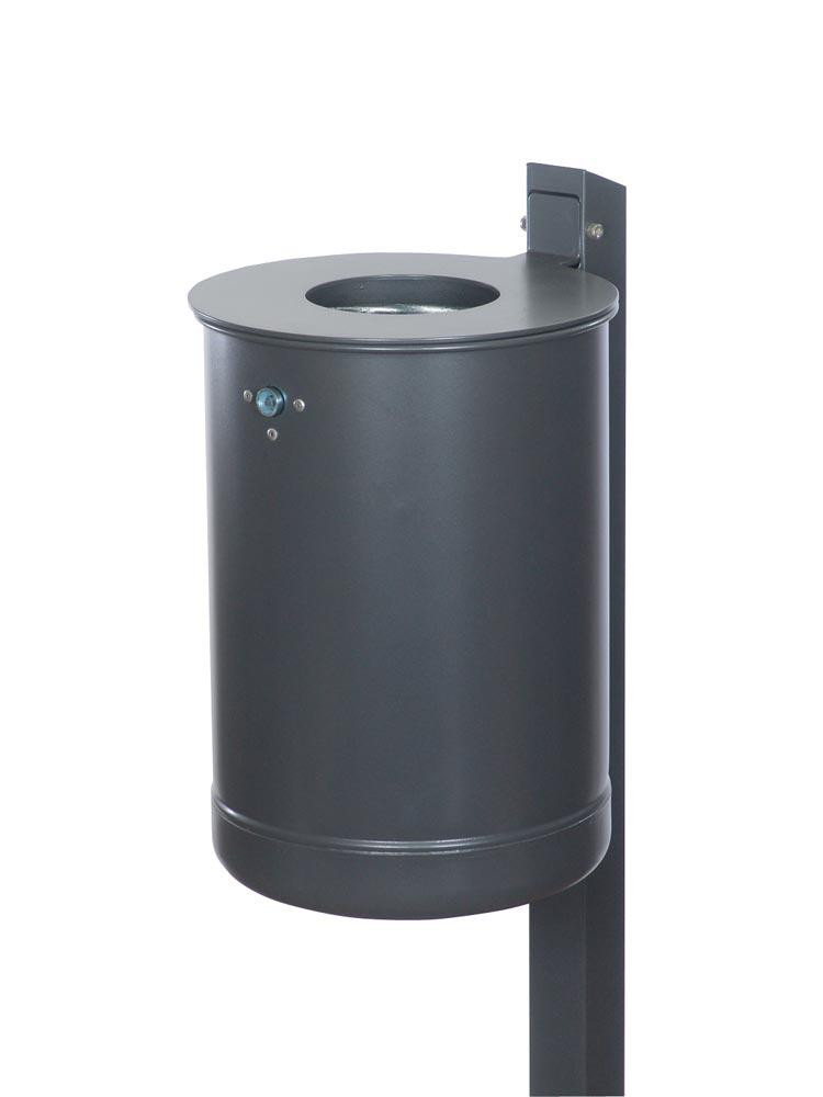 Stand-Abfallbehälter, 35 l, ungelocht m. Deckelscheibe, DxH 340x475 mm, Q-Rohrpfosten, zum Einbet., ohne Einsatzbehälter, RAL 7016