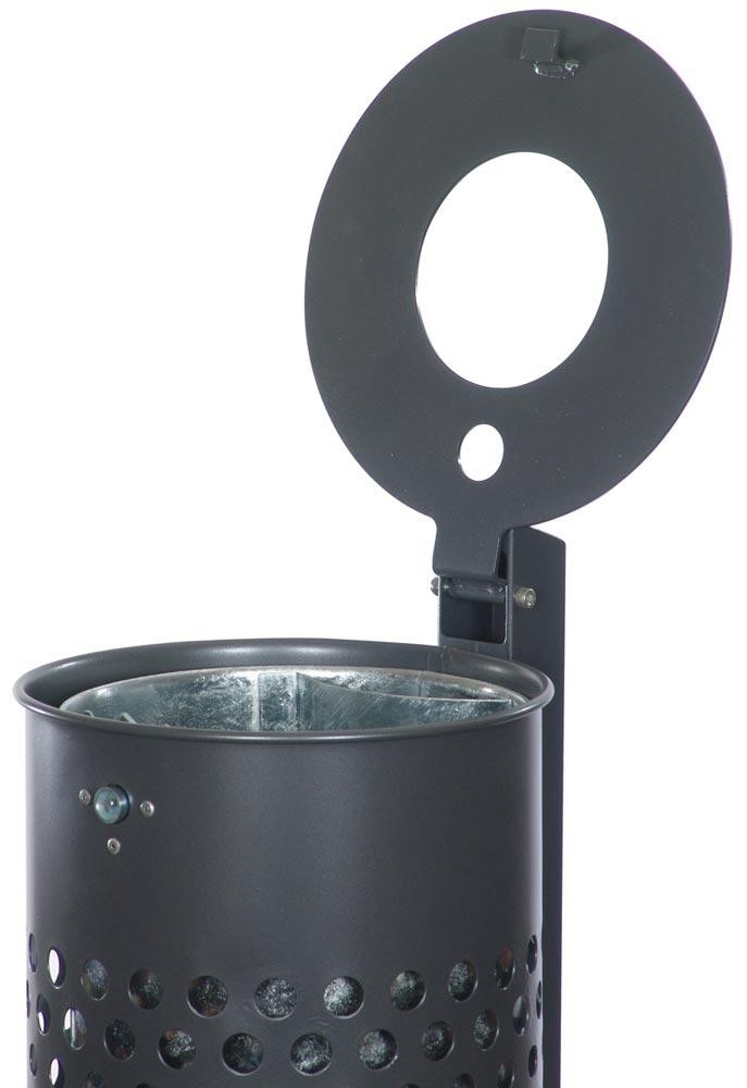 Stand-Abfallbehälter 35 l, gelocht m. Deckelscheibe, DxH 340x475 mm, inkl. Q-Rohrpfosten zum Einbetonieren, ohne Einsatzbehälter, feuerverzinkt