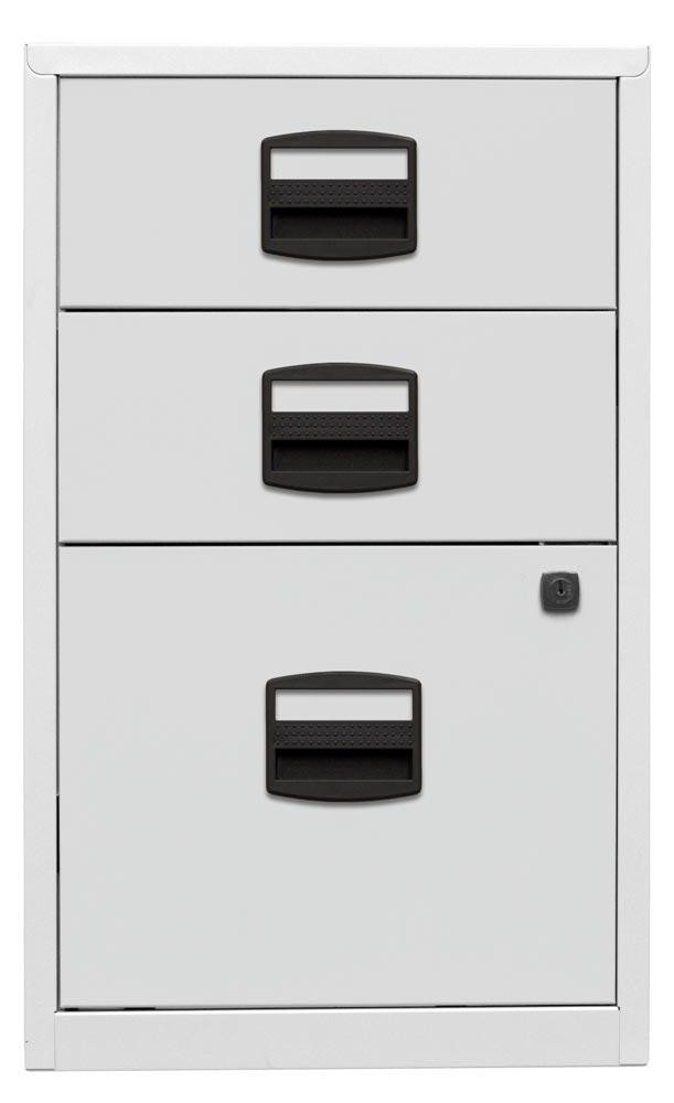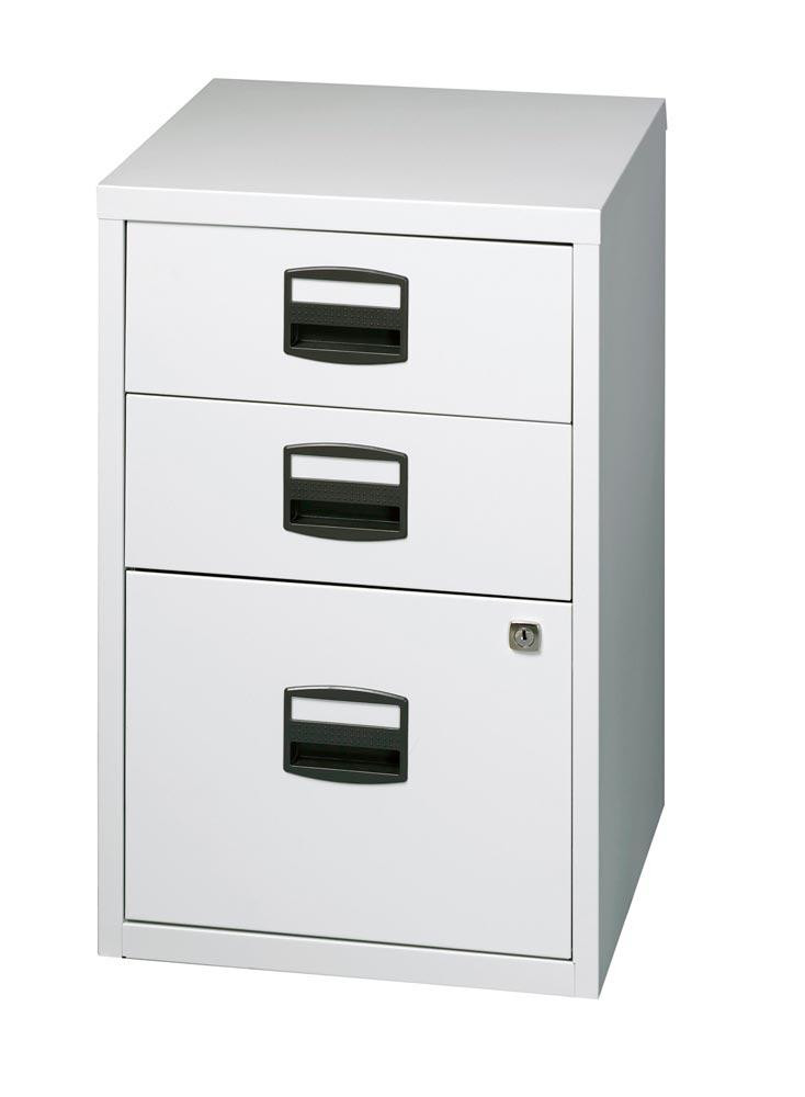 ∙ Die Einstiegsmodelle für den Büroalltag ∙ Diese kompakten und erschwinglichen Container eignen sich ideal für das Home-Office und Bereiche mit geringerer Nutzung ∙ Aufstellung freistehend oder unter dem Schreibtisch ∙ Zylinderschloss mit 2 Schlüsseln ∙ Schloss verschließt jeweils die Schublade und die darüberliegende Schublade ∙ Alle Schubladen sind mit kugelgelagerten Laufschienen ausgestattet ∙ A4 Hängeregistraturauszüge oder Schubladen, Auszug 75 %