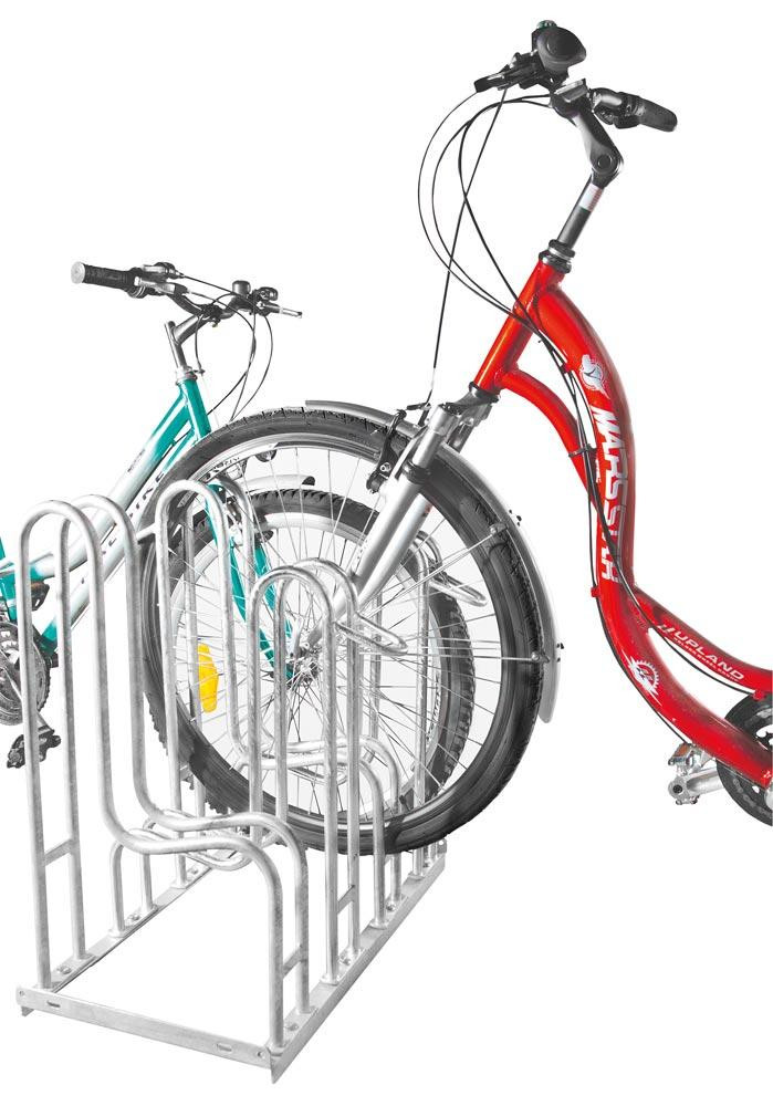 Standparker, Stahl verzinkt, zweiseitige Radeinstellung, Radabstand 350 mm, Hoch-/Tiefstellung, 4er Stand, Länge 700 mm