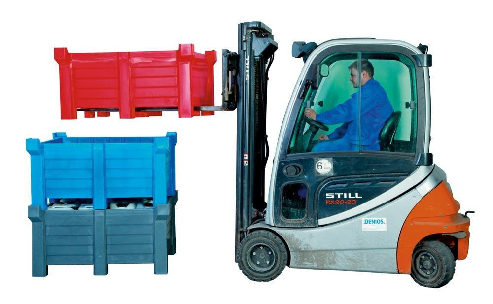 ∙ Stapelbare Transport- und Sammelbehälter aus umweltfreundlichem und widerstandsfähigem Polyethylen (PE) ∙ Geringes Eigengewicht ∙ Witterungsbeständig ∙ Leicht zu reinigen ∙ Platzsparendes Aufbewahren und Bereitstellen Ihrer Lagergüter und Wertstoffe ∙ Sicheres Aufbewahren von Gebinden mit Säuren, Laugen, Ölen, nicht brennbaren Reinigungslösungen, etc. ∙ Hohe Beständigkeit gegenüber vielen Säuren, Laugen und aggressiven Medien ∙ Problemlos auch mit Stahl-Stapelbehältern zu kombinieren ∙ Von allen Seiten leicht per Hubwagen oder Gabelstapler zu unterfahren