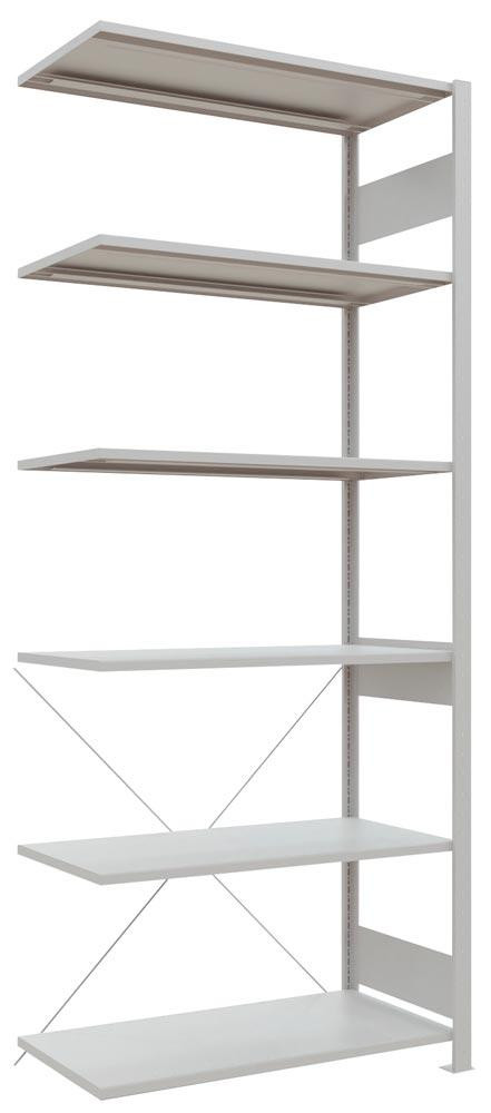 Steckregal, Anbaufeld, RAL 7035 lichtgrau, 6 Fachböden, Fachlast 330 kg, Feldlast 2300 kg, BxTxH 1000x500x2500 mm