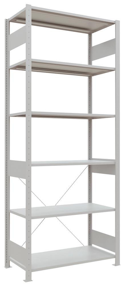 Steckregal, Grundfeld, RAL 7035 lichtgrau, 6 Fachböden, Fachlast 330 kg, Feldlast 2300 kg, BxTxH 1000x500x2500 mm