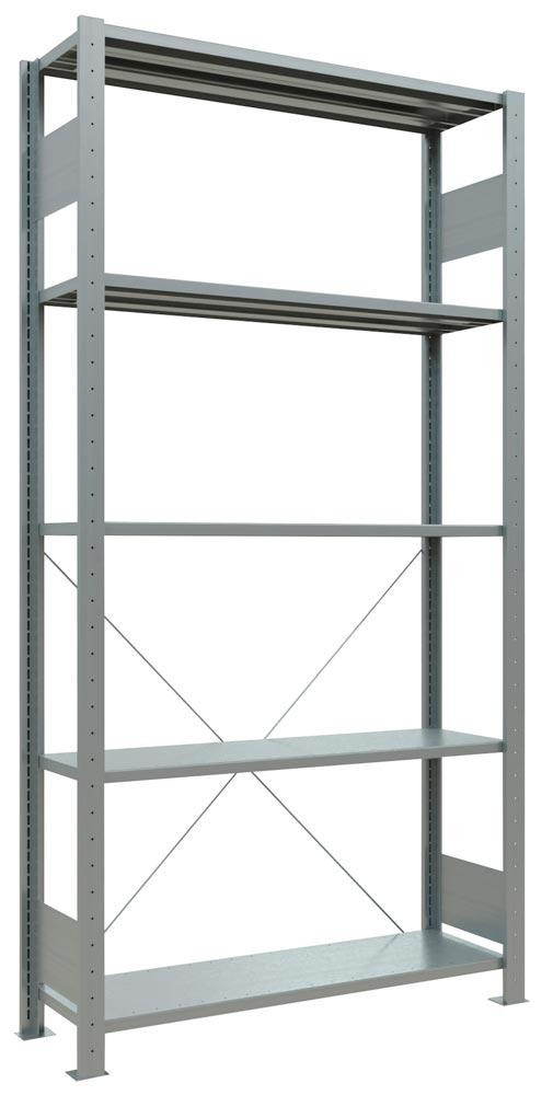 Steckregal, Grundfeld, verzinkt, 5 Fachböden, Fachlast 330 kg, Feldlast 2100 kg, BxTxH 1000x300x2000 mm