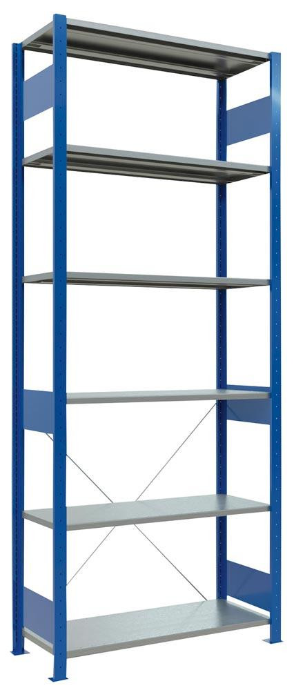 Steckregal RAL 5010 enzianblau, Grundfeld, 6 verzinkte Fachböden, BxTxH 1000x400x2500 mm, Fachlast 150 kg