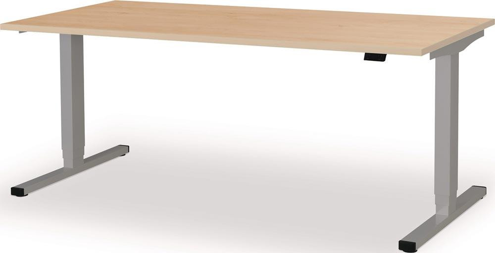 Tischplatte aus 25-mm dreischichtigen Feinspanplatten melaminharzbeschichtet, mit einem ABS-Umleimer, inkl. abklappbarer Kabelwanne · elektromotorische Höhenverstellung · verstellbar von 650 bis 1250 mm · je Teleskopsäule ein integrierter Hochleistungsmotor, Hubgeschwindigkeit 50mm/sec. · Belastung: dynamisch 70 kg, statisch 75 kg · Gestell mit Nivelliergleitern für Bodenausgleich · Standardbedienelement Auf/Ab - Soft-Start/Stopp-Funktion · Anti-Kollisions-System