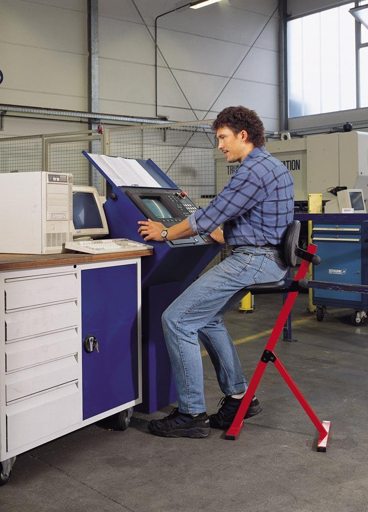 Stehhilfe mit Rückenlehne, Bezug Skai schwarz, Höhenverstellung 550-900 mm, RAL 3020