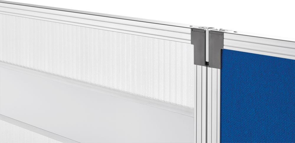 · Aluminiumrahmen · T-Füße aus Metall, lichtgrau lackiert · Inkl. Adaptern zur Verbindung von zwei oder mehreren Raumteilern