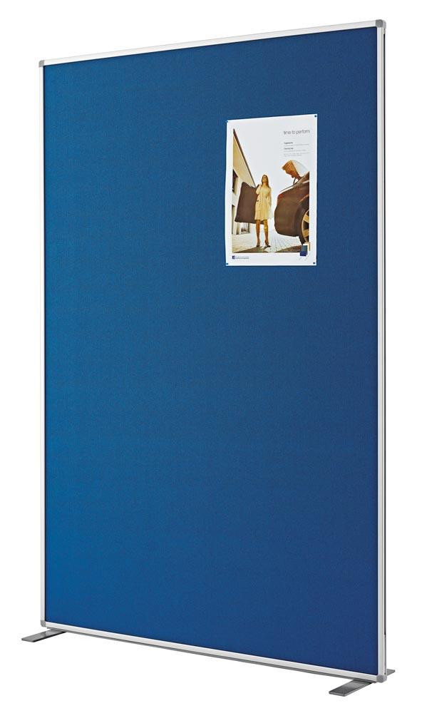 Stellwand, BxTxH 1250x350x1800 mm, Alurahmen, Füllung Filz blau, T-Stellfüße