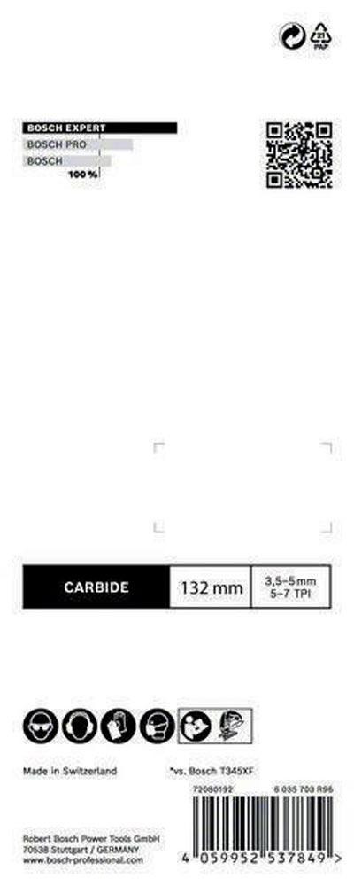 langlebiges Schneiden verschiedenster Baustoffe · mit Bosch Carbide Technology · progressive Zahnteilung, die Material aller Dicken aggressiv schneidet, ohne zu brechen · passend für alle T-Schaft-Stichsägen