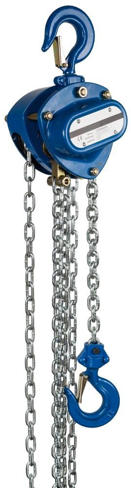 ∙ Heben und Senken durch Betätigung der verzinkten Handkette ∙ Robuster Flaschenzug zum Heben und Ziehen mit großzügigen Sicherheitsbremsen ∙ Pulverbeschichtetes Stahlblechgehäuse mit komplett verzinktem Innengehäuse ∙ Umlenkrollen und Hakenhalter aus Stahlguss ∙ Trag- und Lasthaken aus Vergütungsstahl geschmiedet ∙ Galvanisch verzinkte Lastkette gemäß DIN EN 818-7-T ∙ 3 m Standardhub