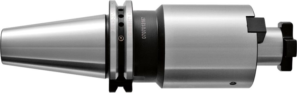 mit vergrößertem Bunddurchmesser · mit Steilkegel nach DIN 69871 Form AD/B · mit zentraler Kühlmittelzufuhr und wiederverschließbaren Kühlkanälen am Bund sowie mit zusätzlichen Kühlkanalbohrungen an der Stirnseite · zur Aufnahme von Messerköpfen und Fräsern mit Quernut DIN 1880