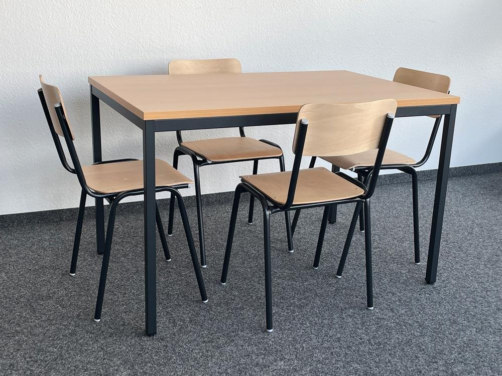 Tisch-Stuhl-Set, bestehend aus 4 Stapelstühlen und 1 Tisch 1200 mm breit, Gestell schwarz, Sitz/Rücken Buche, Tischplatte buche