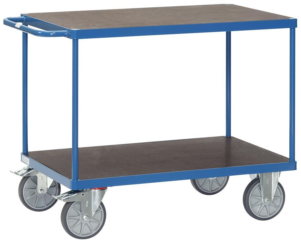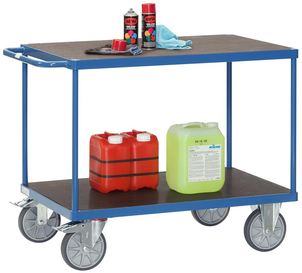 Tischwagen mit 2 wasserfesten Ladeflächen LxB 1200x800 mm, Außenmaße LxBxH 1397x809x900 mm, Traglast 600 kg, RAL 5007 brillantblau