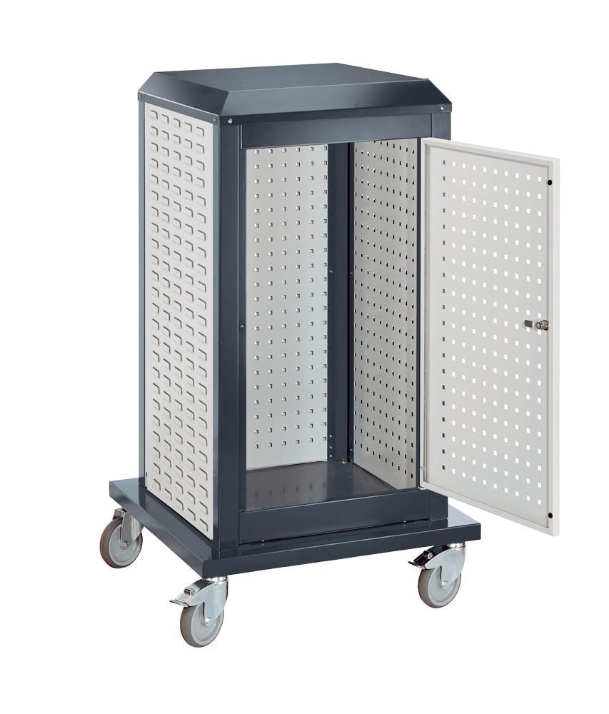 Tool-Tower klein, BxTxH 700x700x1260 mm, mobil, 1 Tür, 3 Platten, RAL 7016/7035