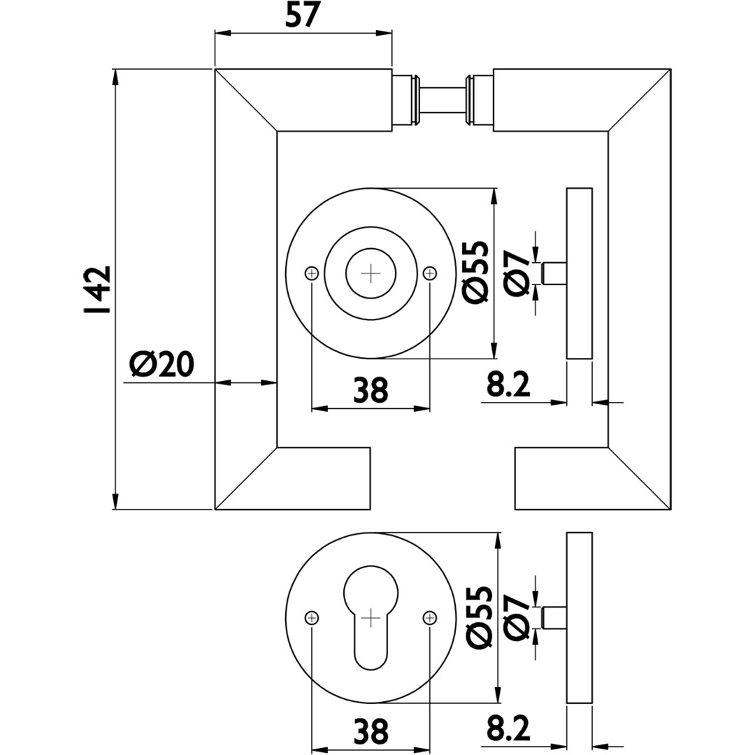 | Vierkant | 9 geteilt mm |