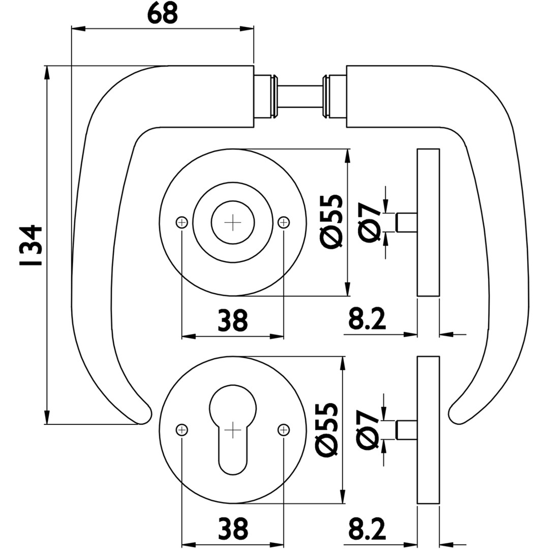 - Türdrücker fest/drehbar gelagert auf Stahl/Kunststoff - Unterkonstruktion.