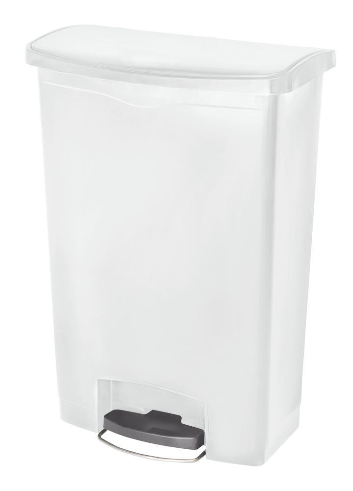 Tret-Abfallsammler, Kunststoff, Volumen 90 l, BxTxH 570x353x826 mm, Pedal an breiter Seite, weiß