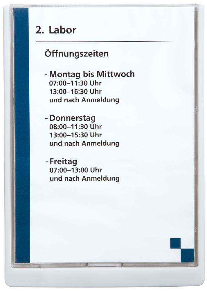 Türschild aus ABS, Sichtfenster Acryl, Klick-Funktion, BxH 210x297 mm (DIN A4), Rahmenfarbe weiß, VE 1 Stück, Mindestbestellmenge 3 Stückk