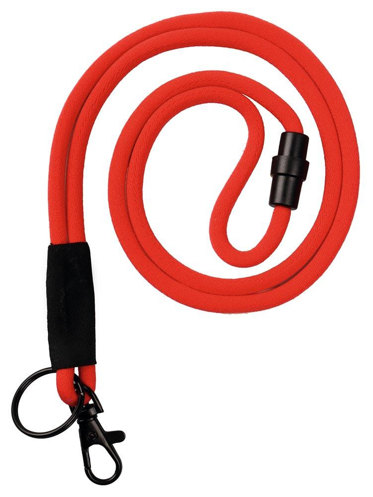 Umhängeband rund, Polyester, 460 mm lang, mit Karabinerhaken + Schlüsselring, rot, VE 30 Stück
