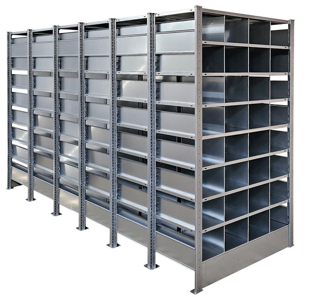 Wabenregal, Grundfeld, BxTxH 1000x2000x2000 mm, 32 Lagerfächer auf 8 Ebenen, Fachlast 85 kg, verzinkt