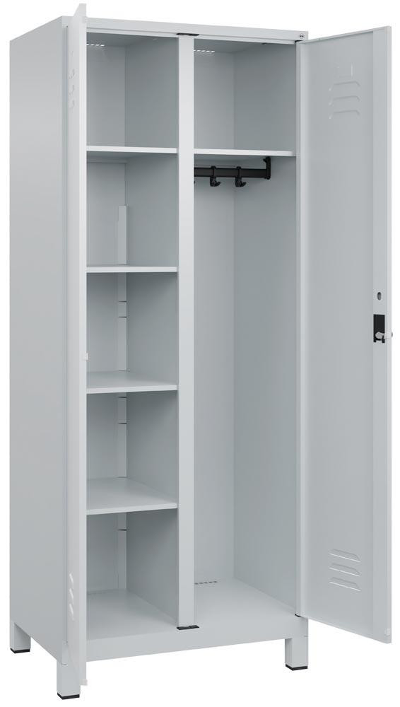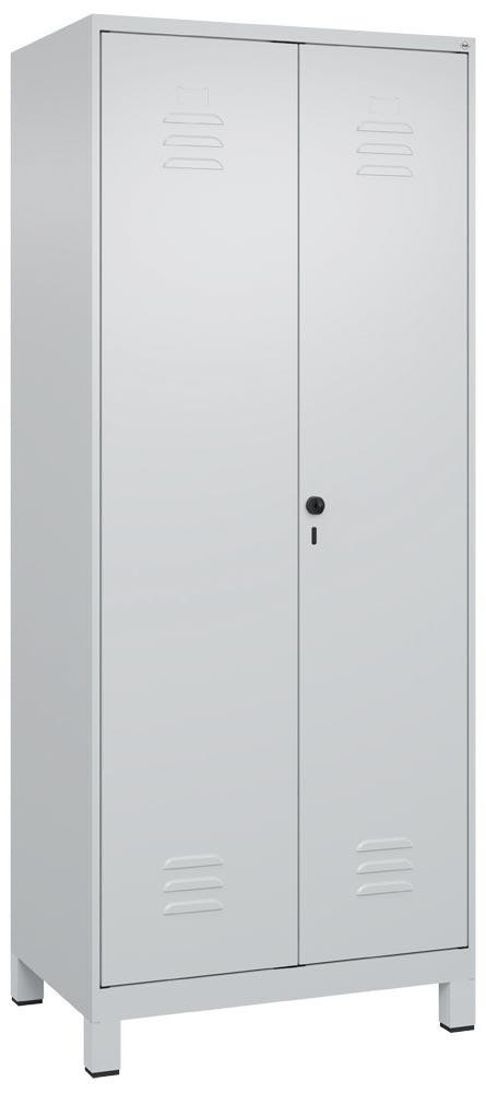 Wäsche-/Garderobenschrank Premium, BxTxH 800x500x1950 mm, 2 Abteile a 400 mm, mit Füßen, Drehriegel, RAL 7035
