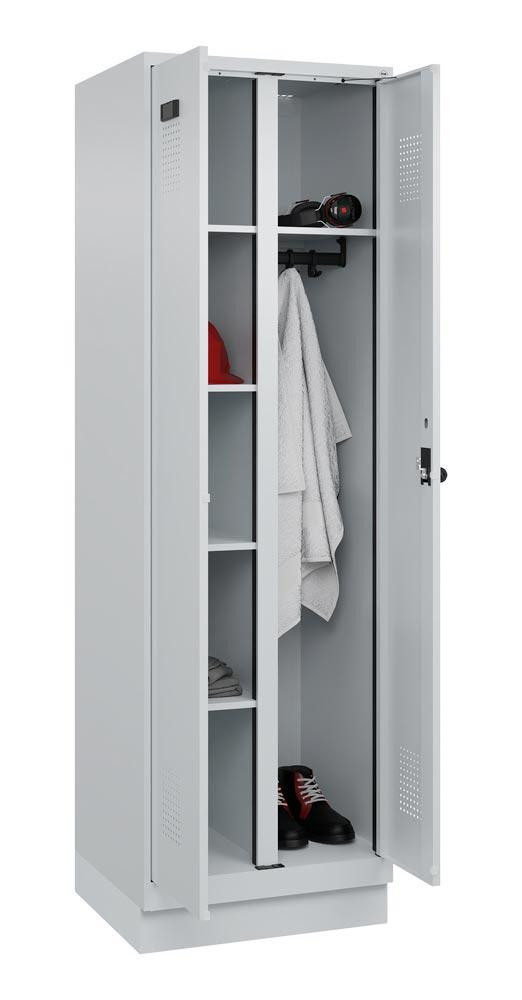 Wäsche-/Garderobenschrank Premium Plus, BxTxH 600x500x1950 mm, 2 Abteile a 300 mm, mit Sockel, Drehriegel, RAL 7035