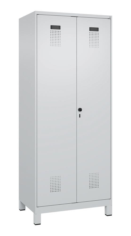 Wäsche-/Garderobenschrank Premium Plus, BxTxH 800x500x1950 mm, 2 Abteile a 400 mm, mit Füßen, Drehriegel, RAL 7035