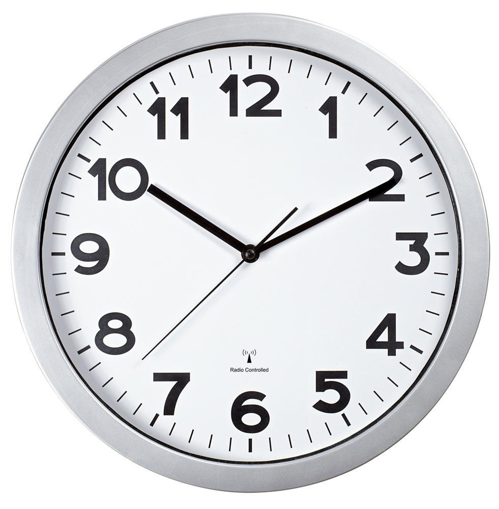 Wanduhr, Step, Funklaufwerk, Batterie 1,5 V (AA), DM 350 mm, Kunststoffgehäuse silber, Ziffernblatt weiß