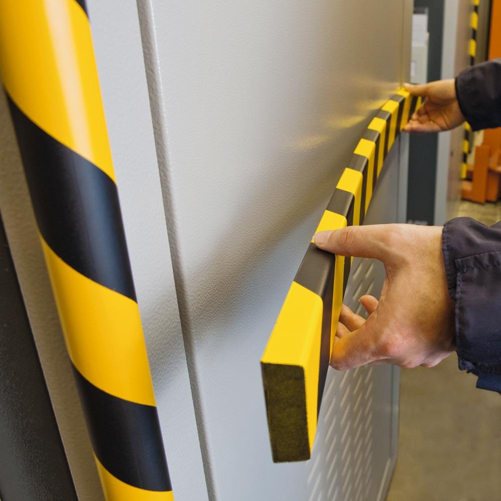 ∙ Für den Innen- und Außenbereich nach § 12 VBG 125 ∙ Aus flexiblem, alterungsbeständigem Polyurethanschaum ∙ Zuschnitt mit scharfem Messer möglich ∙ Nach DIN 4844 mit UV-beständigen Signalfarben lackiert: gelb/schwarz ∙ Temperaturbeständig von -40 °C bis +90 °C ∙ Silikonfrei ∙ Brandklassifikation UL 94 HB ∙ Absorbiert harte Stöße und entschärft Ecken und Kanten