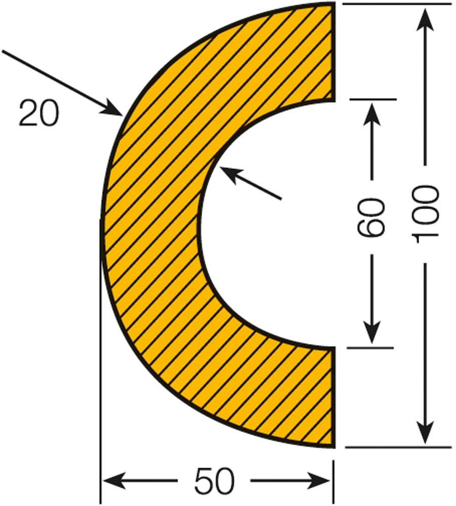 Warn- und Schutzprofil, Rohrschutz, Bogen, 60/100x50 mm, gelb/schwarz, selbstklebend, Länge 1000 mm