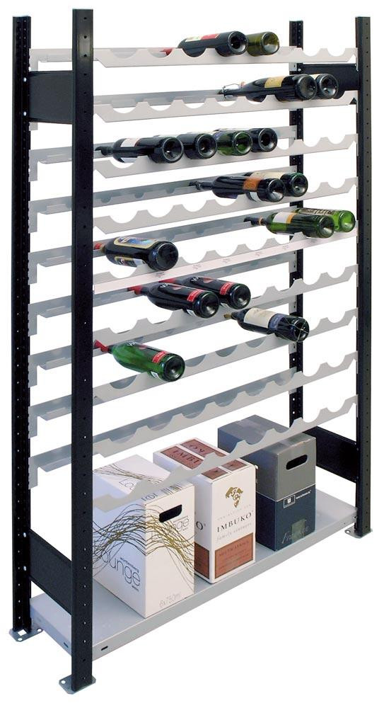 · Übersichtliche Lagerung und schneller Aufbau durch einfaches Stecken der Flascheneinsätze · Schnelle Bestückung und Entnahme · Bis zu 96 Flaschen pro Regal und 1 Ebene für Kartons