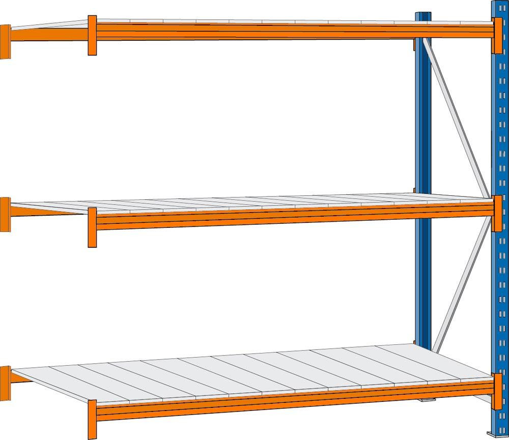 Weitspannregal, Anbaufeld, 3 Ebenen mit Stahlpaneele, BxTxH 1850x1000x2000mm, Fachlast 467 kg, Z-Profil 74x30x1,5mm