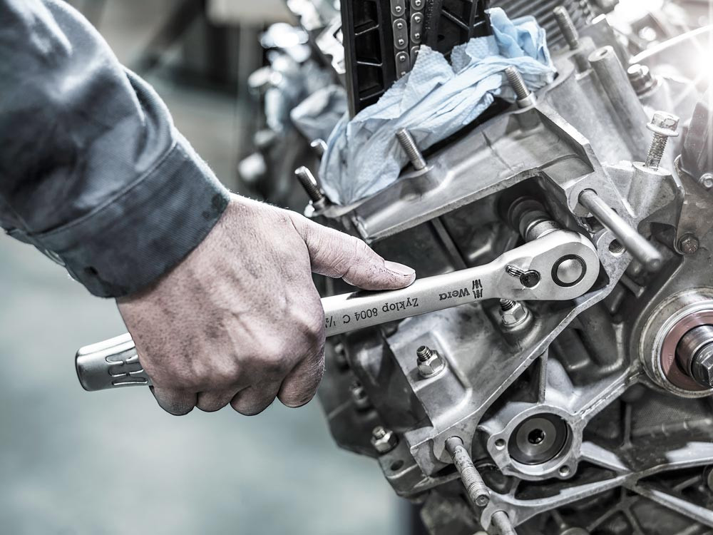 6,3 mm (1/4 ″)-Vierkantantrieb · robuste, feinverzahnte, geschmiedete Vollmetallknarre · aus legiertem Werkzeugstahl · Nussverriegelungsfunktion mit Druckknopfauslösung · schlanke Bauform · langer Hebel · (optimal auch für sehr beengte Arbeitsräume geeignet) · Rückschwenkwinkel 5°