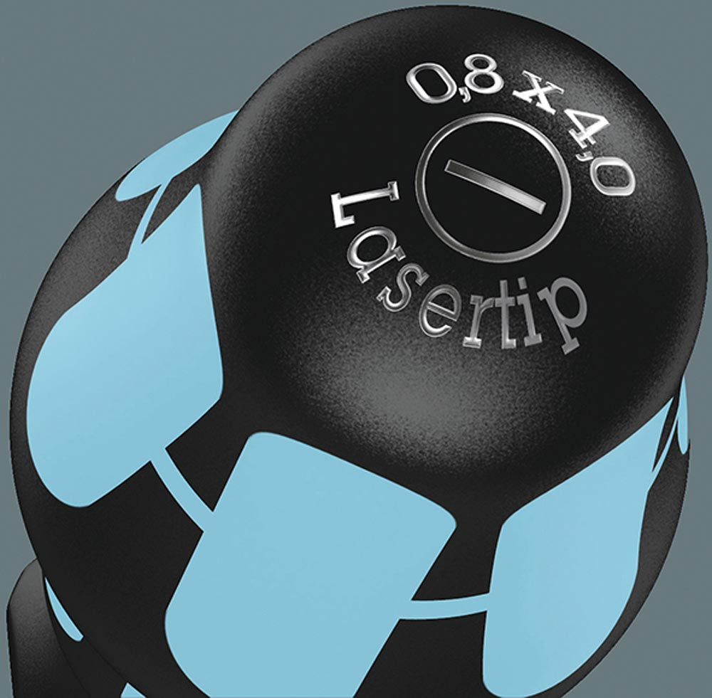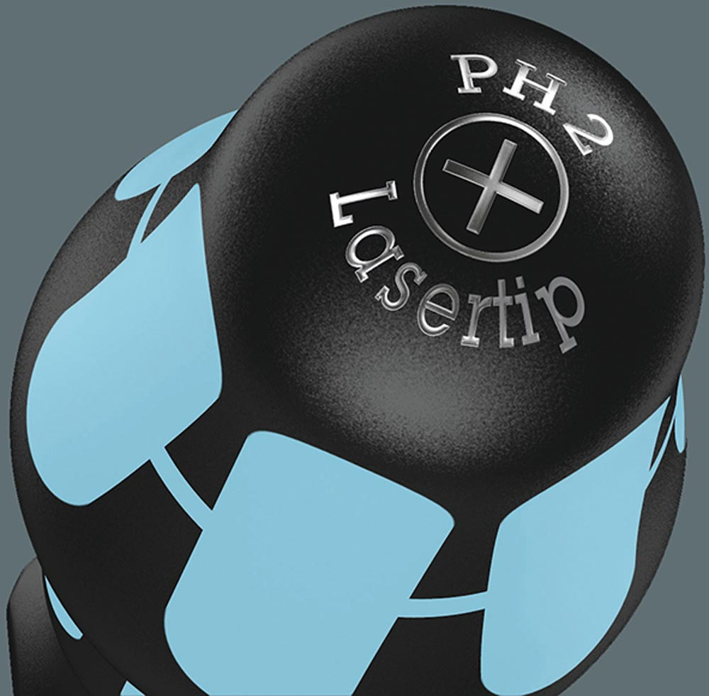 mit Mehrkomponenten-Kraftform-Griffen mit Abrollschutz · Klingen komplett aus Edelstahl · Lasertip-Spitzen (nicht Größe 3,0 x 0,5 / 5,5 x 1,0 mm / PH Gr. 1 +2) · Größenleitsystem · Take it easy Tool Finder System