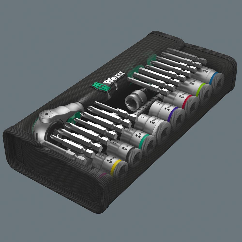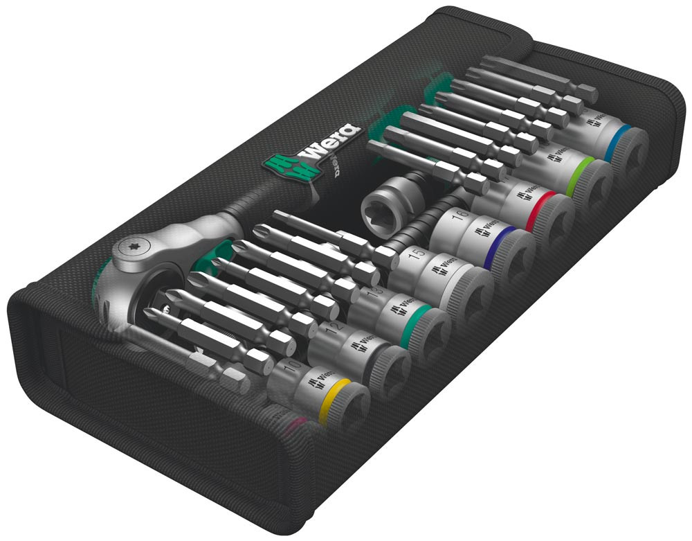 Wera Steckschlüssel-Satz, Zyklop speed, Vierkantantrieb 3/8 Zoll, 29 teilig, Schwenk-Umschaltknarre mit Schwungmassenkonstruktion, in Textiler Box