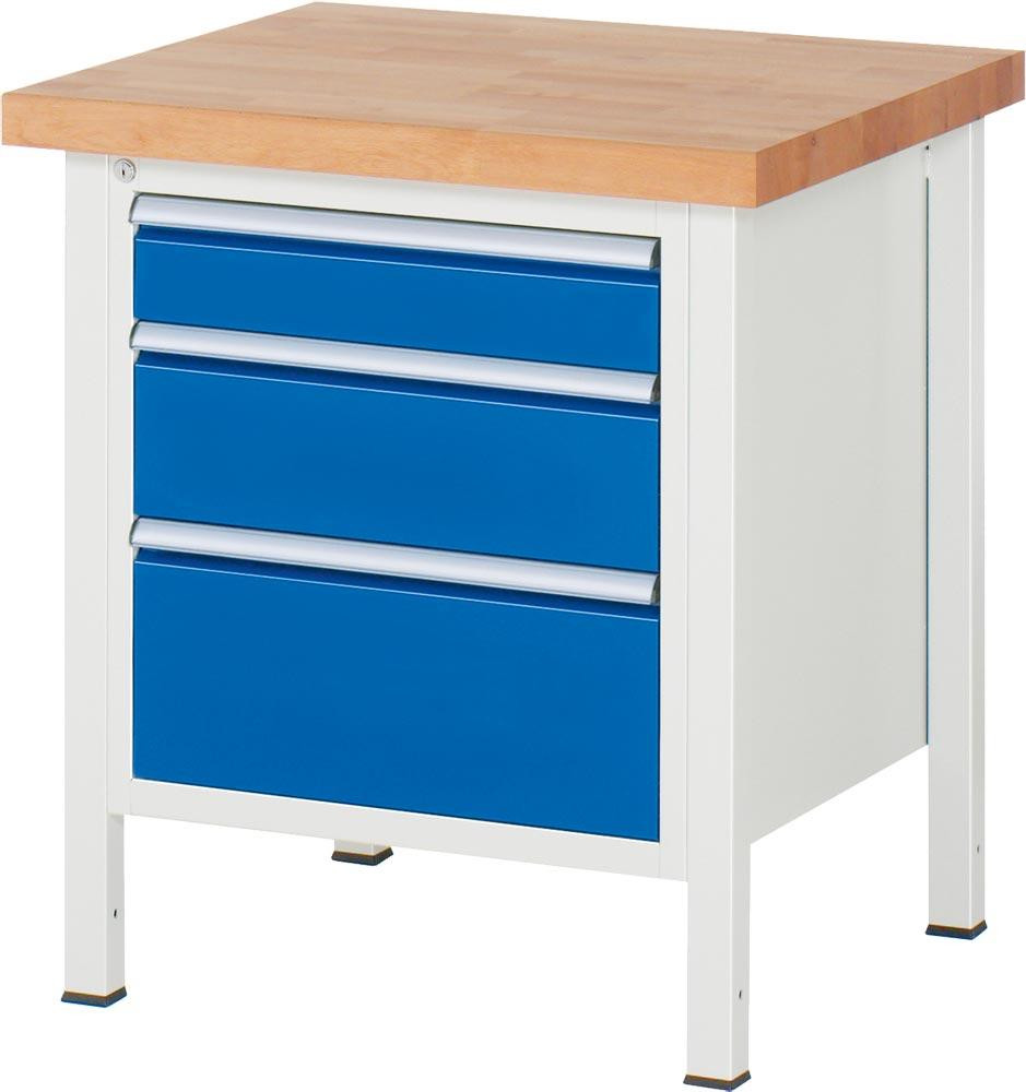 Werkbank, BxTxH 750x700x840-1040 mm, 3 Schubladen 120/180/240 mm, Platte Buche 40 mm, RAL 7035/5010