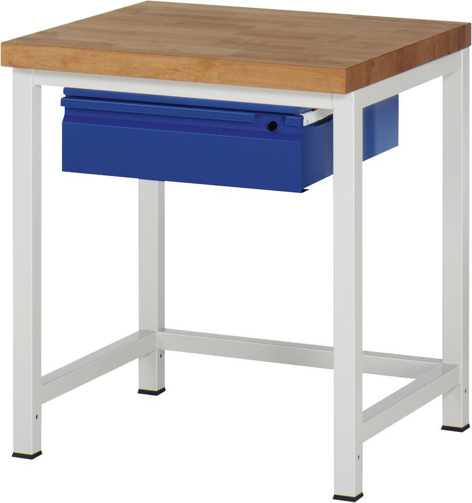 Werkbank, BxTxH 750x700x840-1040 mm, Platte Buche 40 mm, 1 Schublade 150 mm, RAL 7035/5010