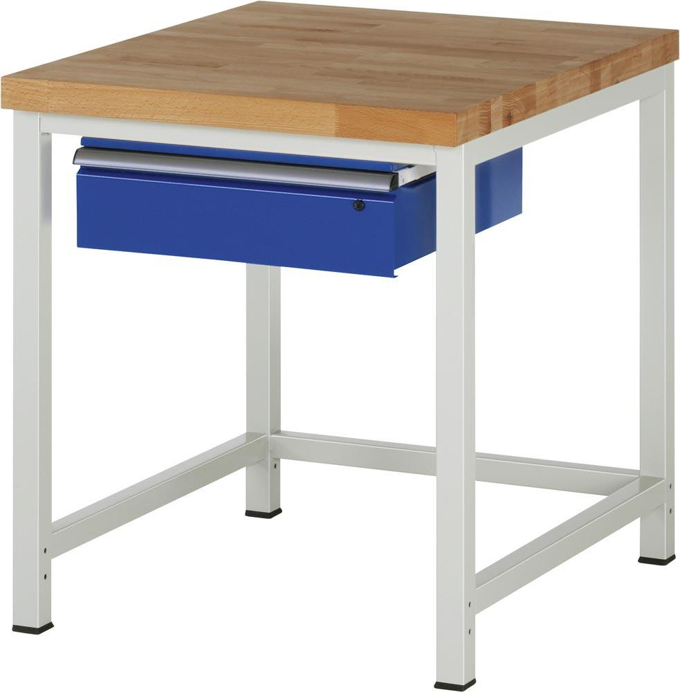 Werkbank, BxTxH 750x900x840 mm, 1 Schublade 150 mm, Platte Buche 40 mm, RAL 7035/5010