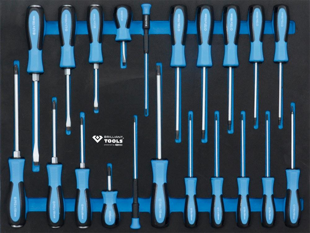 ∙ 7 Schubladen bestückt mit 207 bzw. 473 Werkzeugen ∙ Einzelverriegelung verhindert ungewolltes Öffnen ∙ Zentralverriegelung aller Schubladen durch Zylinderschloß ∙ Kantenschutz aus Kunststoff ∙ Rollen mit 2 Lenk- und 2 Bockrollen ∙ Belastbarkeit der Schubladen 35 kg, Gesamttragkraft 400 kg ∙ Gesamtmaße B x T x H 770 x 470 x 975 mm ∙ Kugelgelagerte Schubladen mit Vollauszug