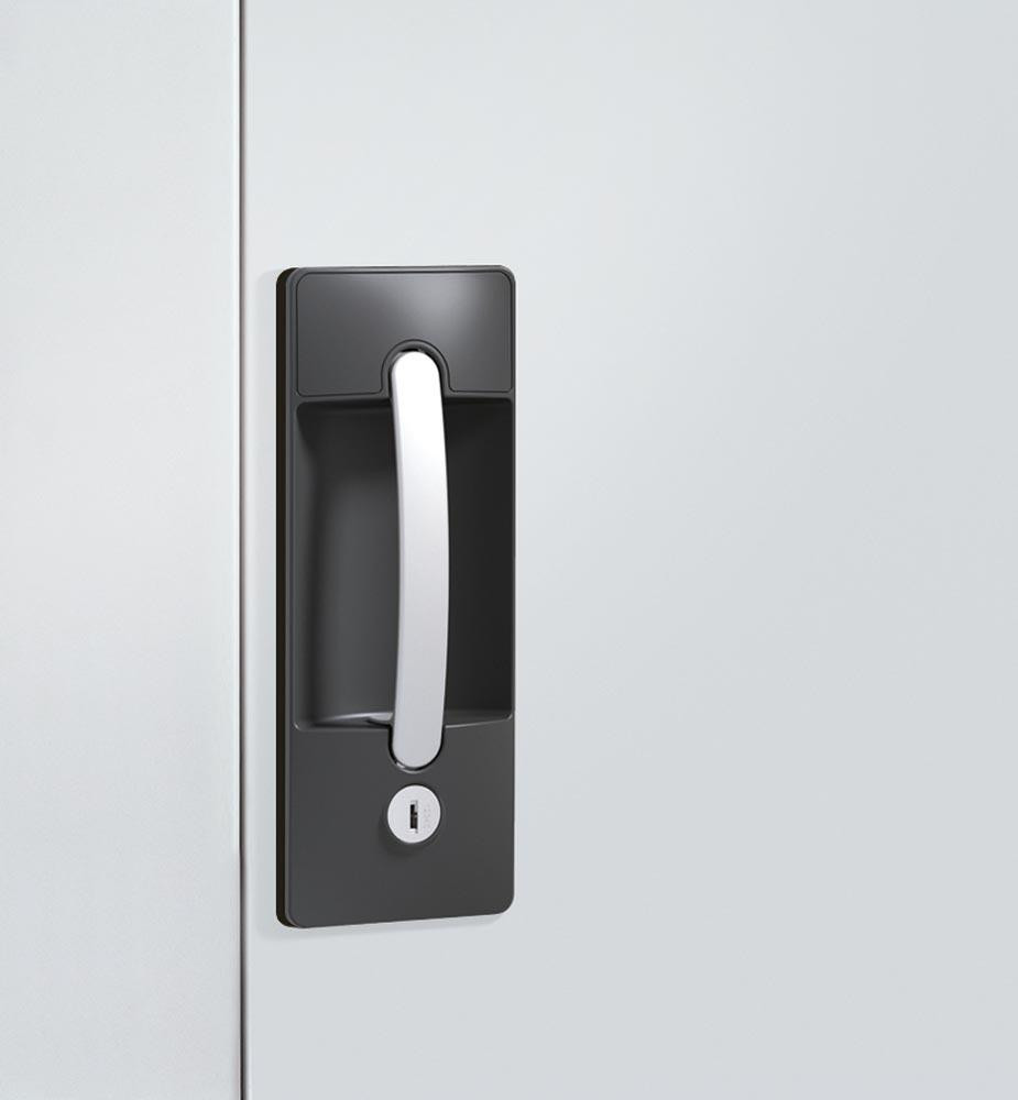 · Stabile Stahlblechkonstruktion mit hochwertiger Einbrennbeschichtung · Inneneinrichtung kann im Raster von 15 mm verstellt werden · Flügeltüren mit einem Öffnungswinkel von 110° · 70 kg Traglast pro Boden bzw. 25 kg pro Schublade (bei gleichmäßig verteilter Last) · Schranklast bis 450 kg · B x T x H 930 bzw. 1200 x 500 x 1950 mm · Untergestelle aus Vierkantrohr als Zubehör erhältlich, niveauregulierbar z.B. zur Unterfahrbarkeit der Schränke mit Hubwagen