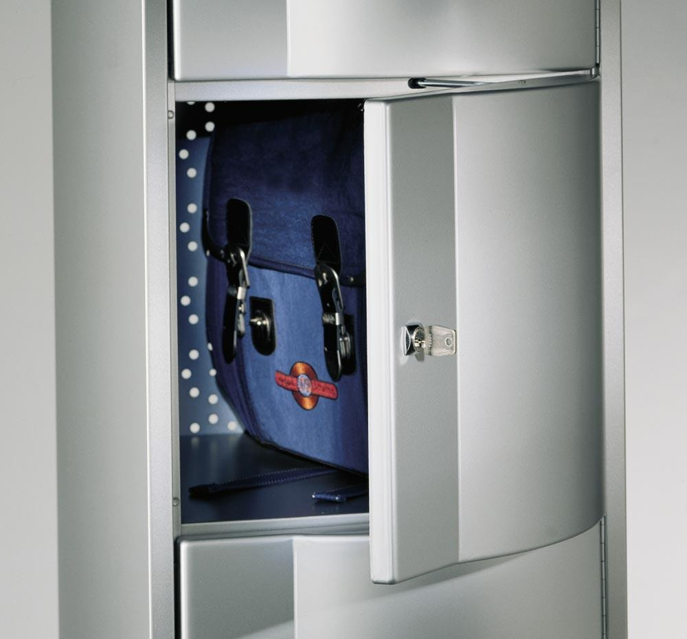 Wertfachschrank mit Spezialtüren, 1x5 Fächer, BxTxH 396x540x1950 mm, RAL 7035/5012