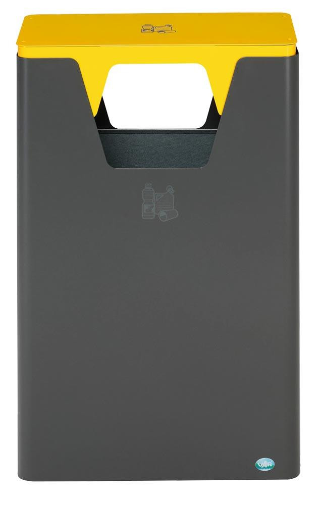 Wertstoffsammler, Stahlblech, Volumen 60 Liter, abnehmbarer Aufsatz, BxTxH 500x250x825 mm, Korpus eisenglimmer, Aufsatz gelb