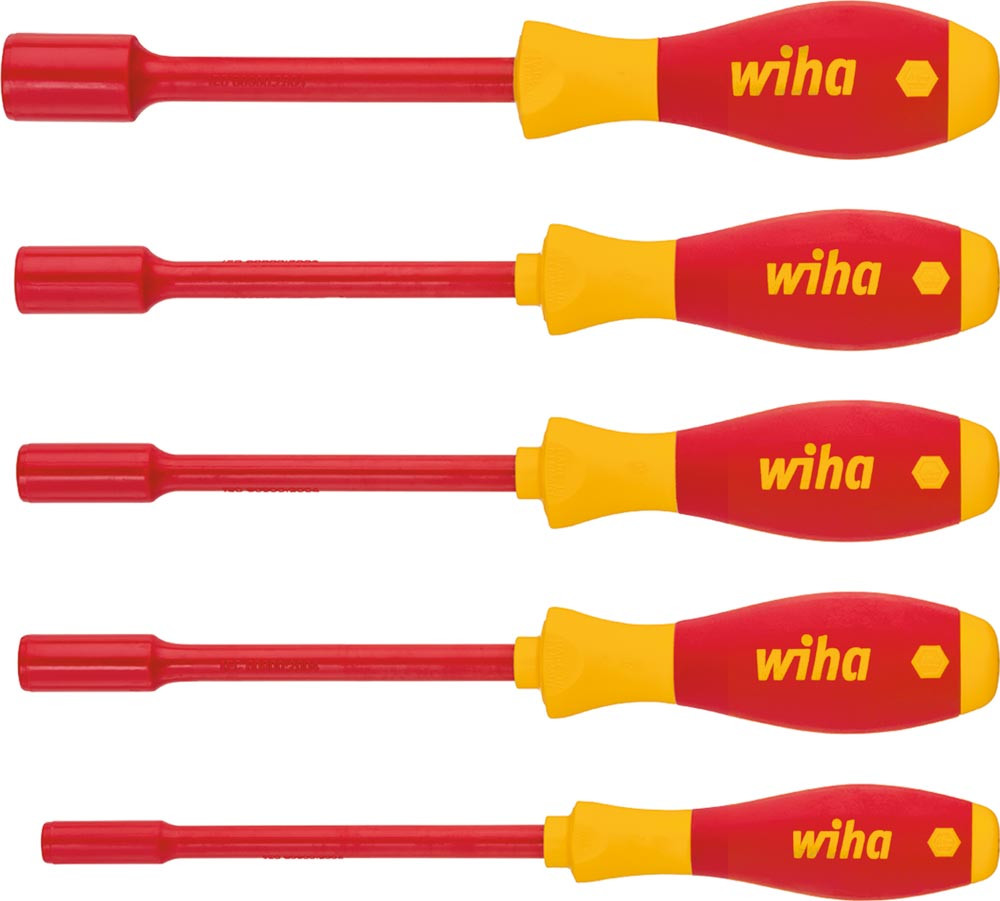 Wiha Schraubendreher-Steckschlüssel-Satz, VDE, 5 teilig, Inhalt 5,5/7/8/10/13 mm, mit SoftFinish Mehrkomponentengriff, im Karton