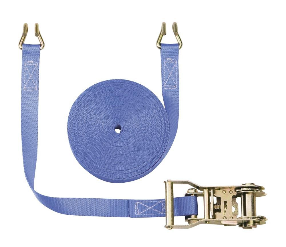 Zweiteiliger Zurrgurt, mit Rahmenhaken, 1000 daN zul. Zugkraft in der Umreifung, Gurtbreite 25 mm, Länge 4 m, Farbe blau, VE 4 Stück