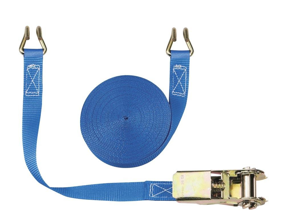 Zweiteiliger Zurrgurt, mit Rahmenhaken, 800 daN zul. Zugkraft in der Umreifung, Gurtbreite 25 mm, Länge 10 m, Farbe blau, VE 4 Stück